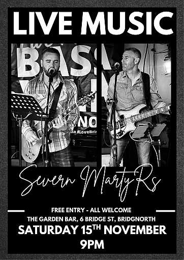 Saturday 15th November - Live music from Severn MartyRs from 9pm.